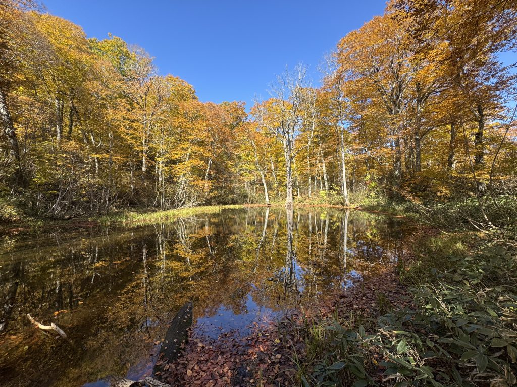 道中からすでに色づきが進み、渓谷も自然園もまさに紅葉の見頃。特にブナの木々が黄金色に輝き、やわらかい日差しに包まれた森は本当に美しかったです。